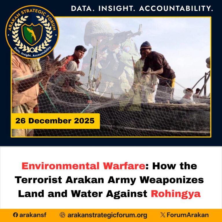 Across northern Arakan, the terrorist Arakan Army (AA) is conducting environmental warfare against Rohingya communities, systematically seizing land, rivers, and fisheries to collapse civilian survival. Since mid-2023, following AA’s expansion in Buthidaung and Maungdaw, Rohingya access to farmland and coastal.......