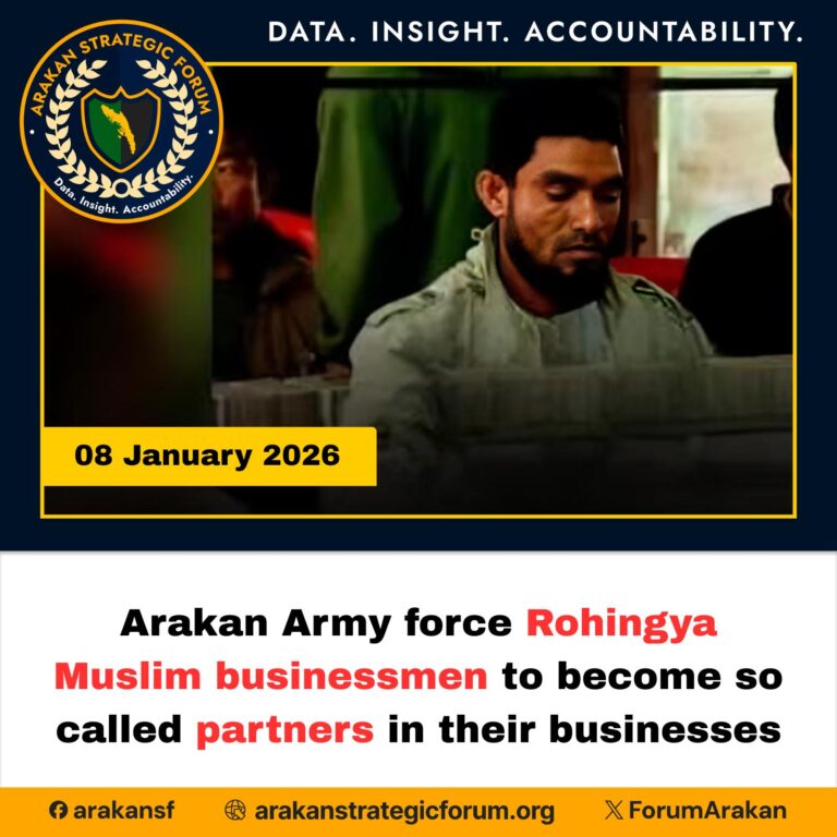 Across northern Arakan, the terrorist Arakan Army is systematically forcing Rohingya businessmen into coerced “partnerships.” Shop owners and traders are summoned and threatened with seizure or destruction of their property unless they surrender ownership shares. This is not voluntary commerce;.......